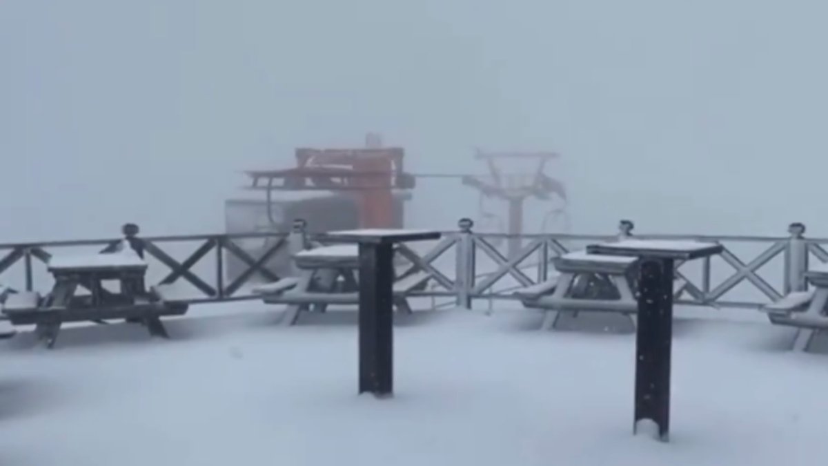 Yağış nedeniyle bölgedeki otel ve teleferik tesislerinin çatıları ile pistler beyaz örtüyle kaplandı.