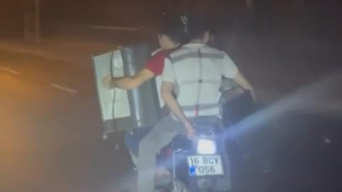 Bursa’da 3 gencin tehlikeli motosiklet yolculuğu yürekleri ağza getirdi.
