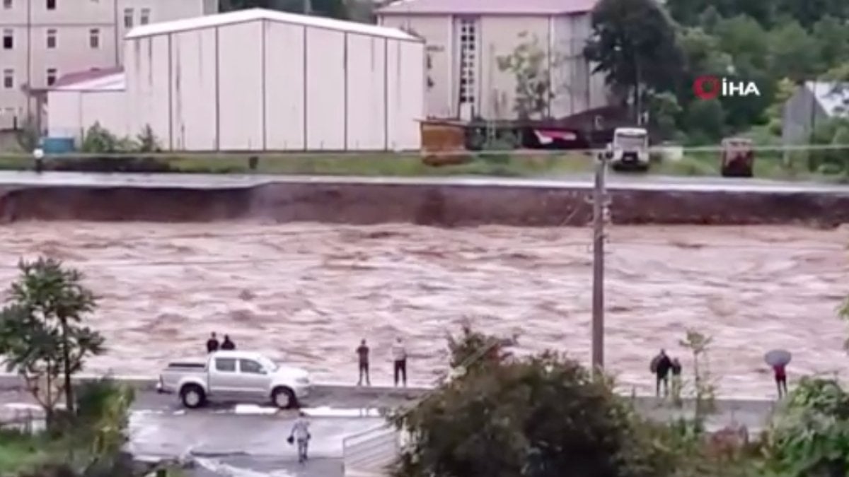 Şiddetli sağanak yağışların sel ve heyelanlara neden olduğu Artvin’de çöken ve sel sularının yükseldiği yollar trafiğe kapandı, ulaşım aksadı.
