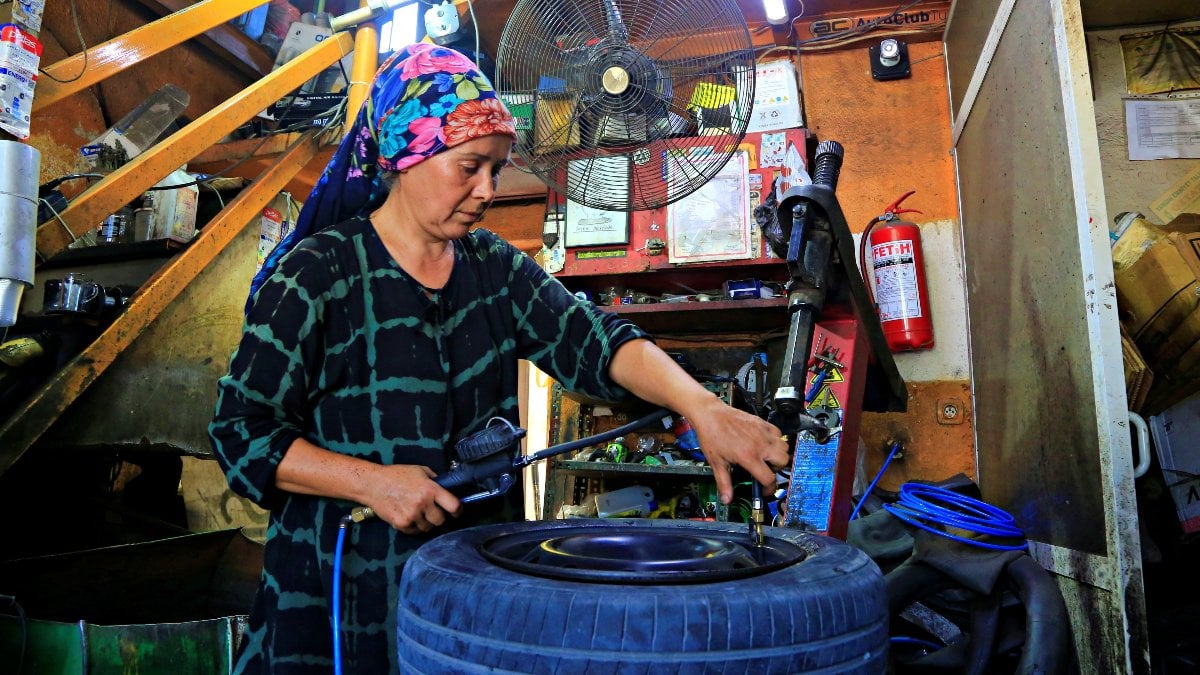 Antalya’da 25 yıldır lastik tamir eden kadın: Pilav yapmaktan kolay