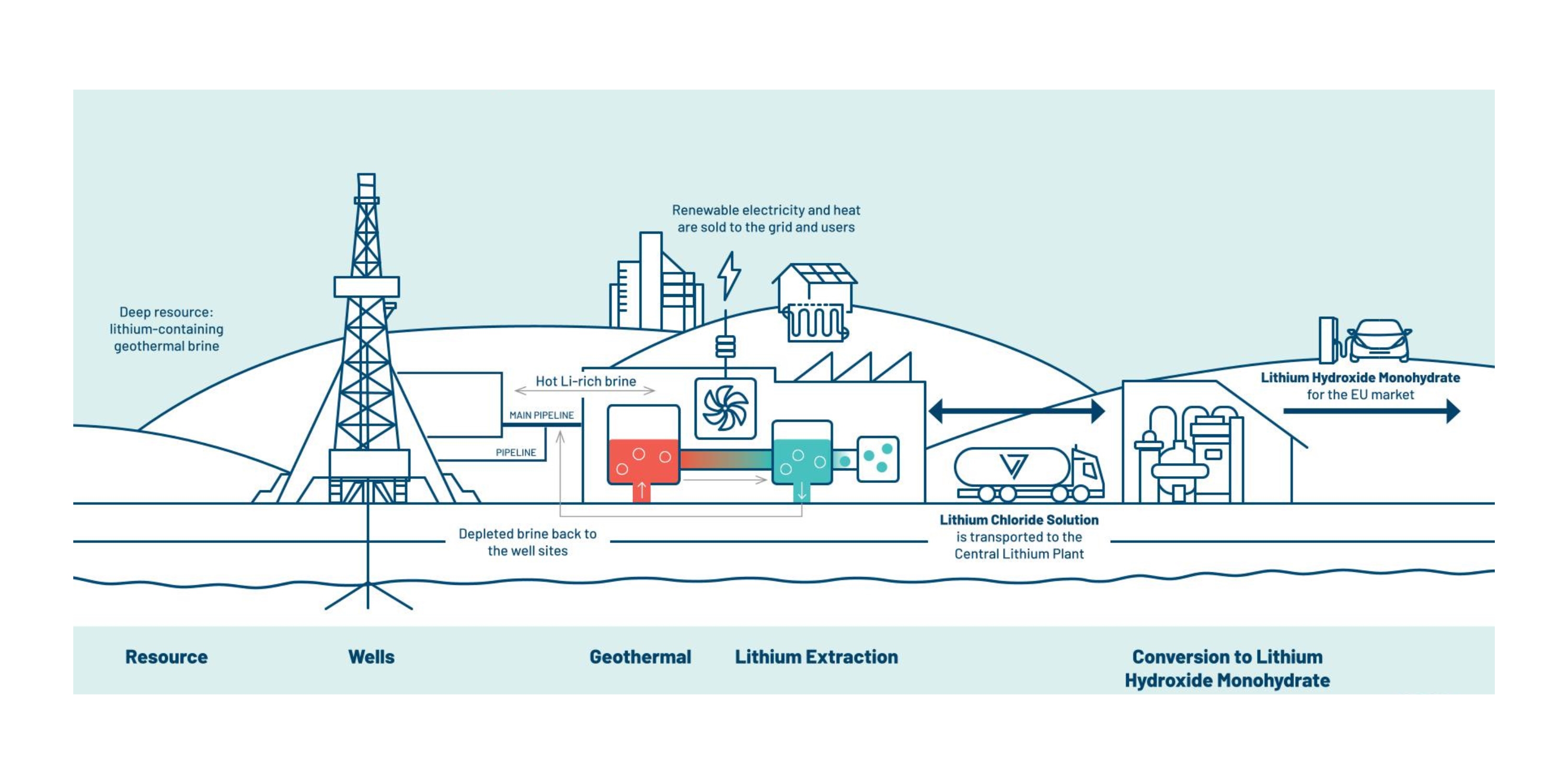 Proje aynı zamanda bölgeye yenilenebilir elektrik ve ısı sağlayacak bir jeotermal enerji tesisini içeriyor. Böylece çıkarılan akışkan hem mineral işlemeye hem de yerel topluluklar için enerji kaynağına dönüşüyor.