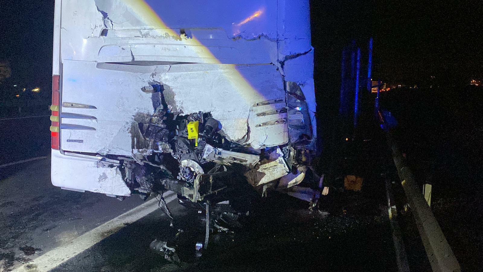 Çarpmanın etkisiyle otobüste bulunan 13 kişi yaralanırken, TIR’ın sürücüsü Hayrettin K. ise kabinde sıkışarak ağır yaralandı.
