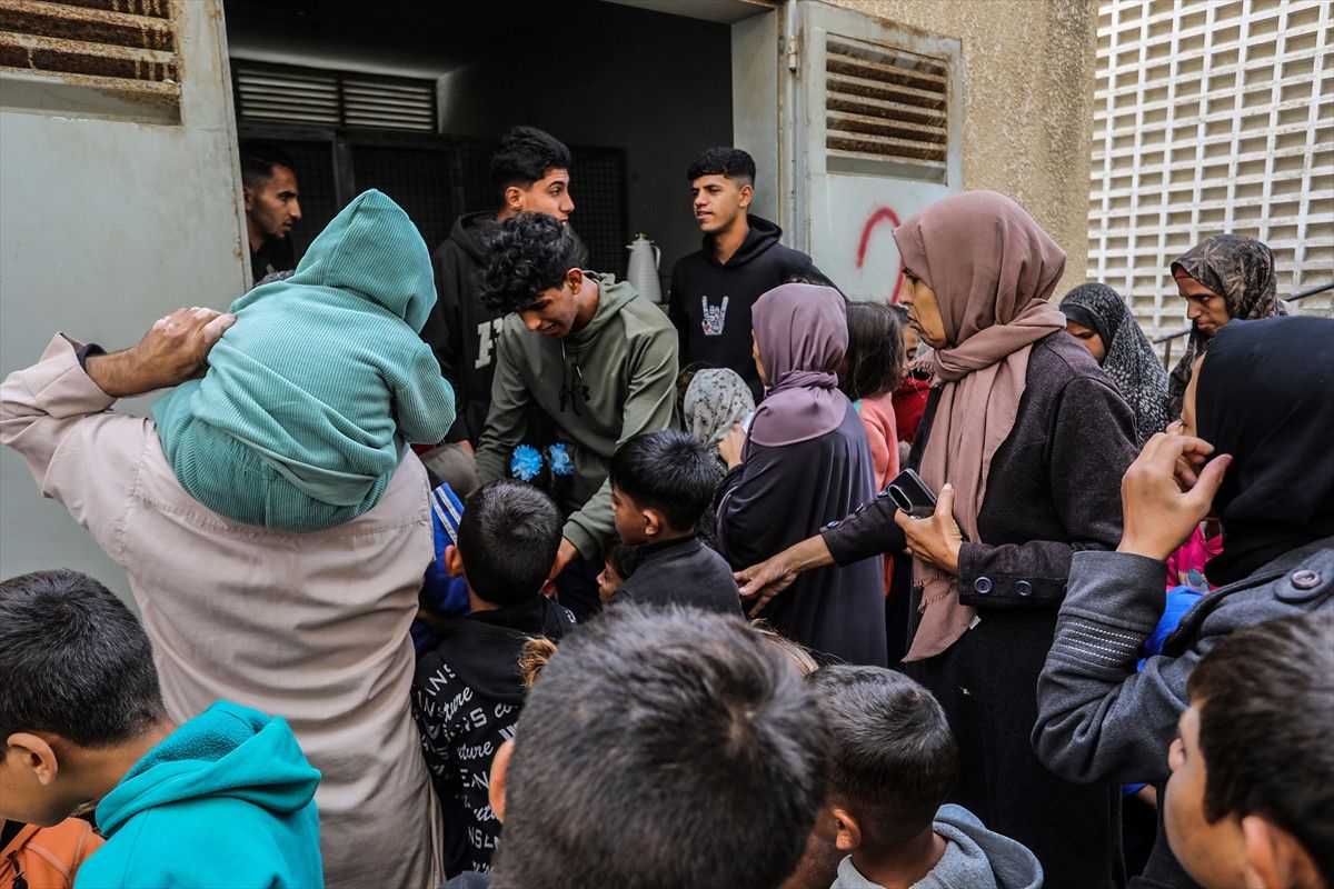 Gazze Şeridi’nin güneyinde bulunan Han Yunus kentindeki el-Mevasi bölgesinde, bir hayır kurumu tarafından İsrail saldırıları sonucu yerinden edilmiş Filistinlilere sıcak yemek dağıtımı yapıldı.