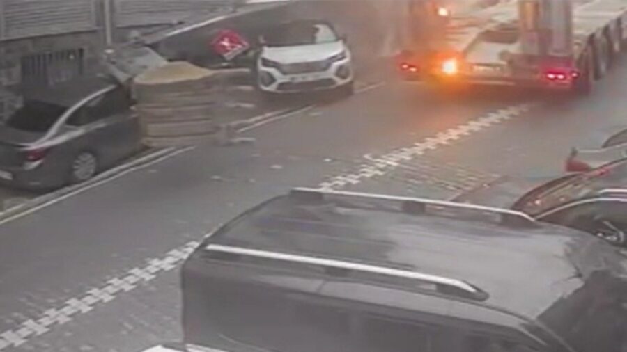 Kaza anı çevredeki güvenlik kamerasınca kaydedildi.