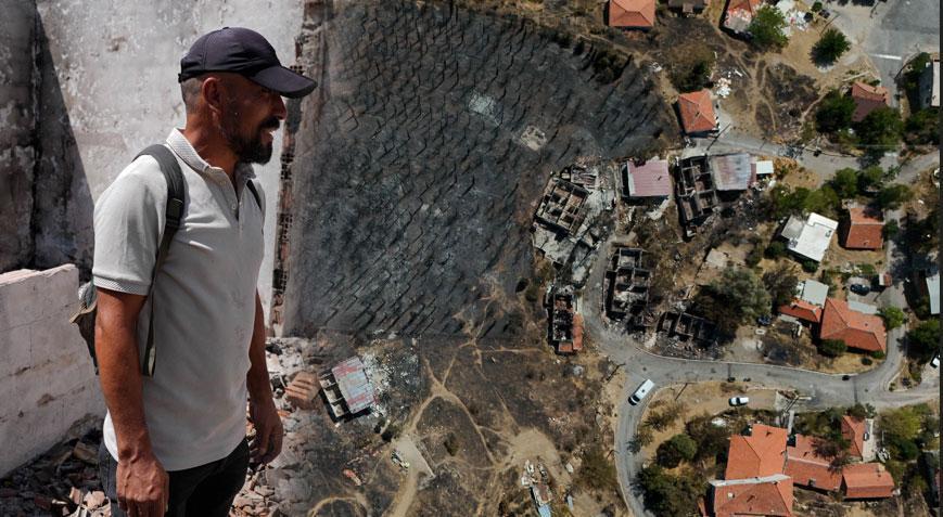 “Hortumla su tuttum ama hiçbir faydası olmadı. Hanımı zorla çıkardık. Ben de kaçtım, kafam hafif yaralandı. Yapacak hiçbir şey yoktu. Oturup izledik. 34 yıldır bu evde oturuyordum. Çocuklarımla kalıyordum. Her şeyim yandı. Bir tane iğne dahi alamadım. Telefonlar, kıyafetler, paralar, hepsi kül oldu gitti. 10 dakikanın içerisinde her şey bitti.”