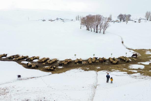 “Burada kışın yaşamak çok zor oluyor. Hayvanları dışarıda beslediğimiz için bizim açımızdan daha zor geçiyor. Rüzgar ve dondurucu soğuklar nedeniyle hayvanlar sürekli içeri kaçıyor. Kar kalınlığı bazı noktalarda 3 metreyi buluyor. Kar evlerin, ahırların önünü kapatmış durumda. Her yer kar altında. Sabahtan akşama kadar kar atıyoruz. Hem karla hem de hayatın zorluklarıyla mücadele ediyoruz. Geçimimizi hayvancılıkla sağlıyoruz, o da biterse göç etmek zorunda kalacağız.”