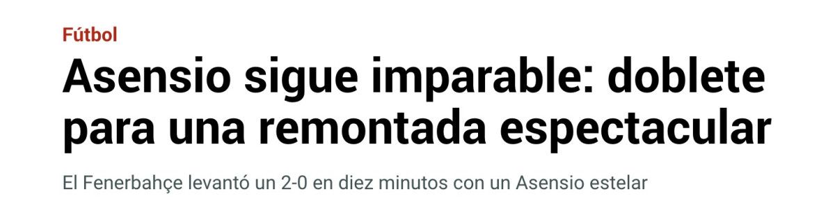 Yine Marca’da, “Asensio, Fenerbahçe’nin rekabet seviyesini yükseltti. Kulübün yıldızı oldu. Taraftarın kalbini kazandı. Tüm Fenerbahçeliler, Asensio’nun kendilerini şampiyonluğa götürmesini bekliyor.” denildi.