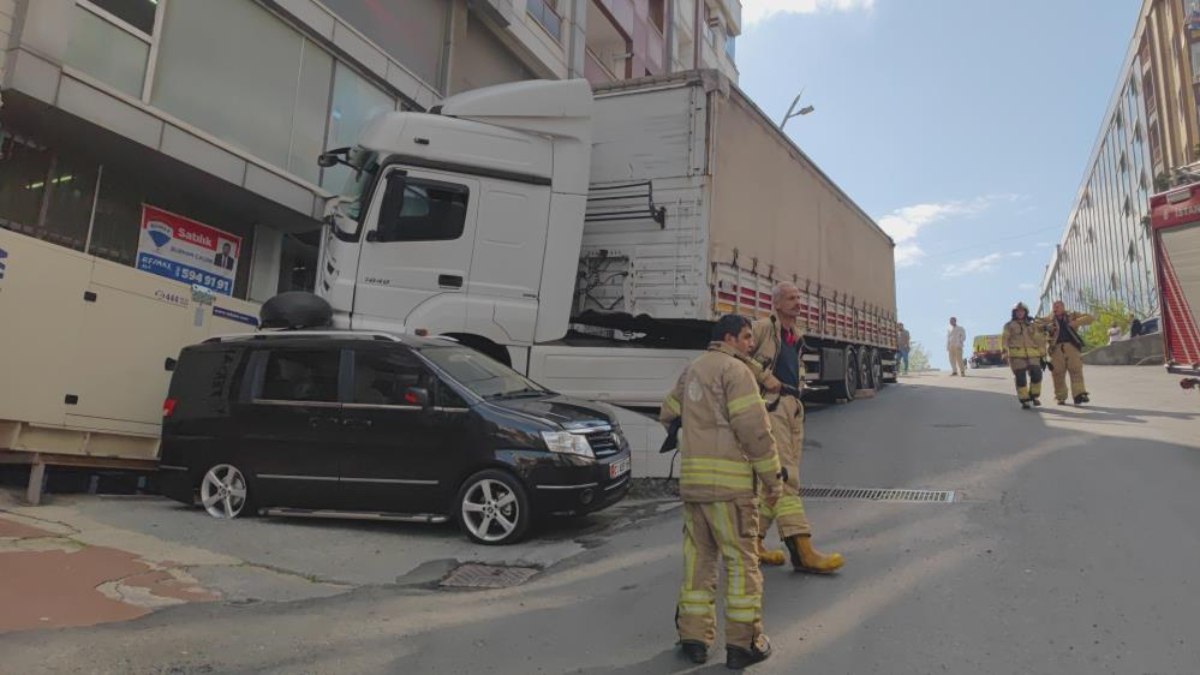 Sultangazi’de freni boşalarak yokuş aşağı kayan tır, binanın önündeki jeneratöre çarpıp park halindeki hafif ticari aracın üzerine düştü.