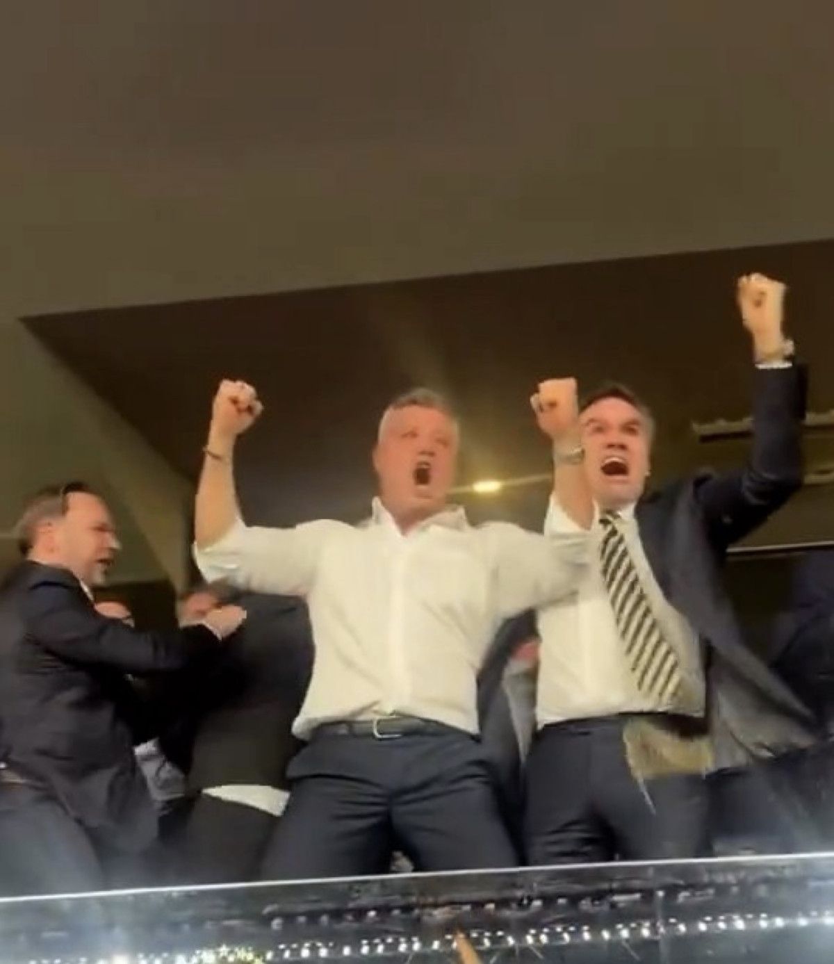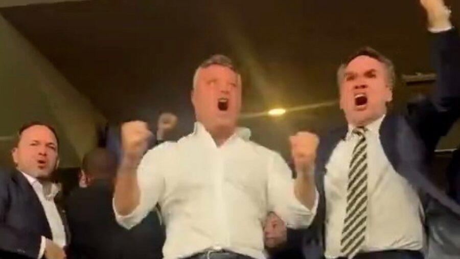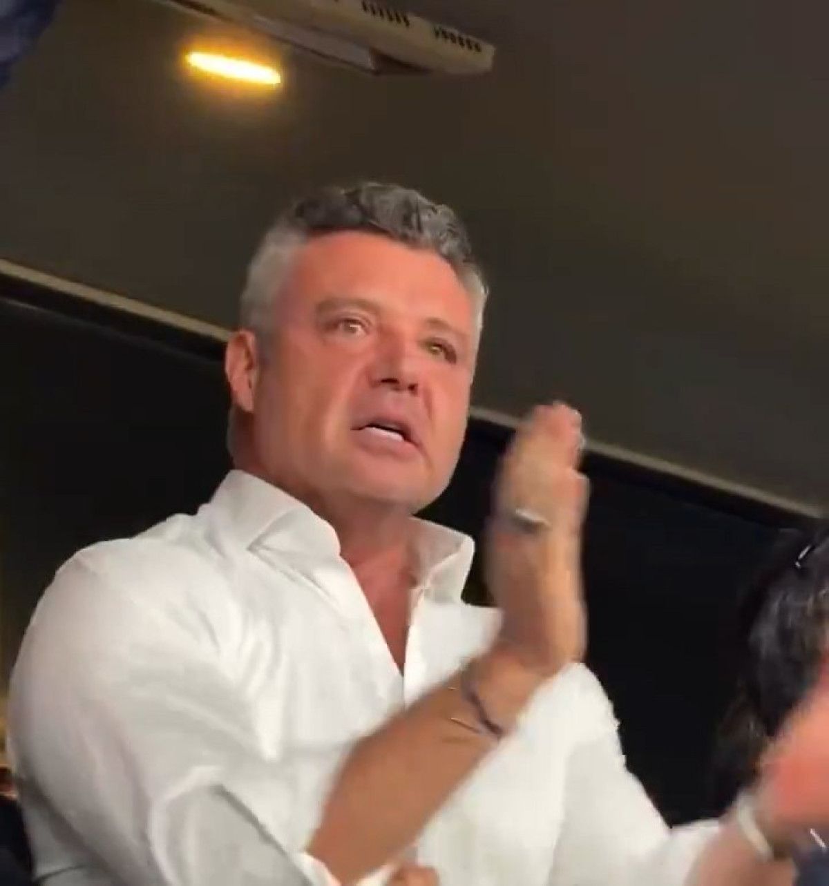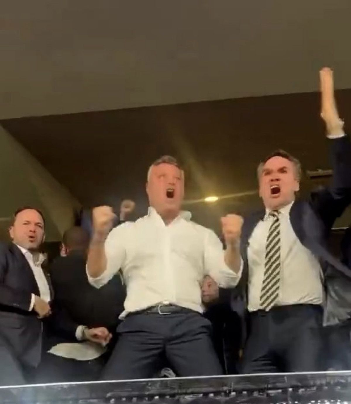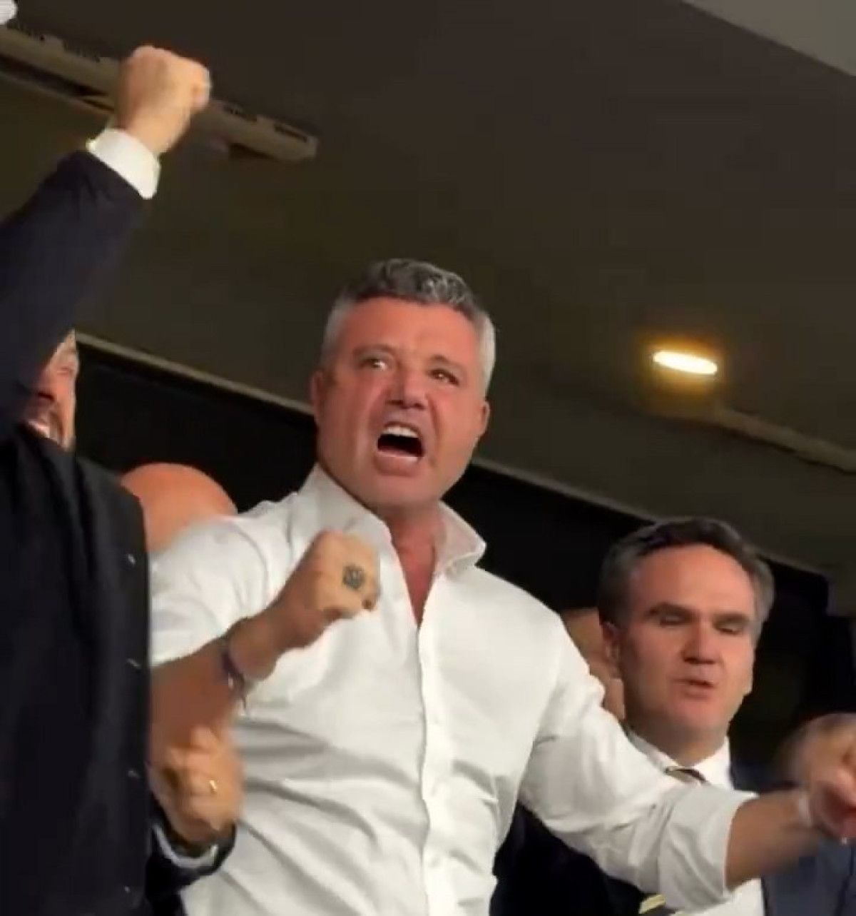 Saran’ın ayağa kalkıp yumruklarını havaya kaldırdığı, çevresindekilerle sarılıp coşkuyla kutlama yaptığı görüntüler kameralara yansıdı.
