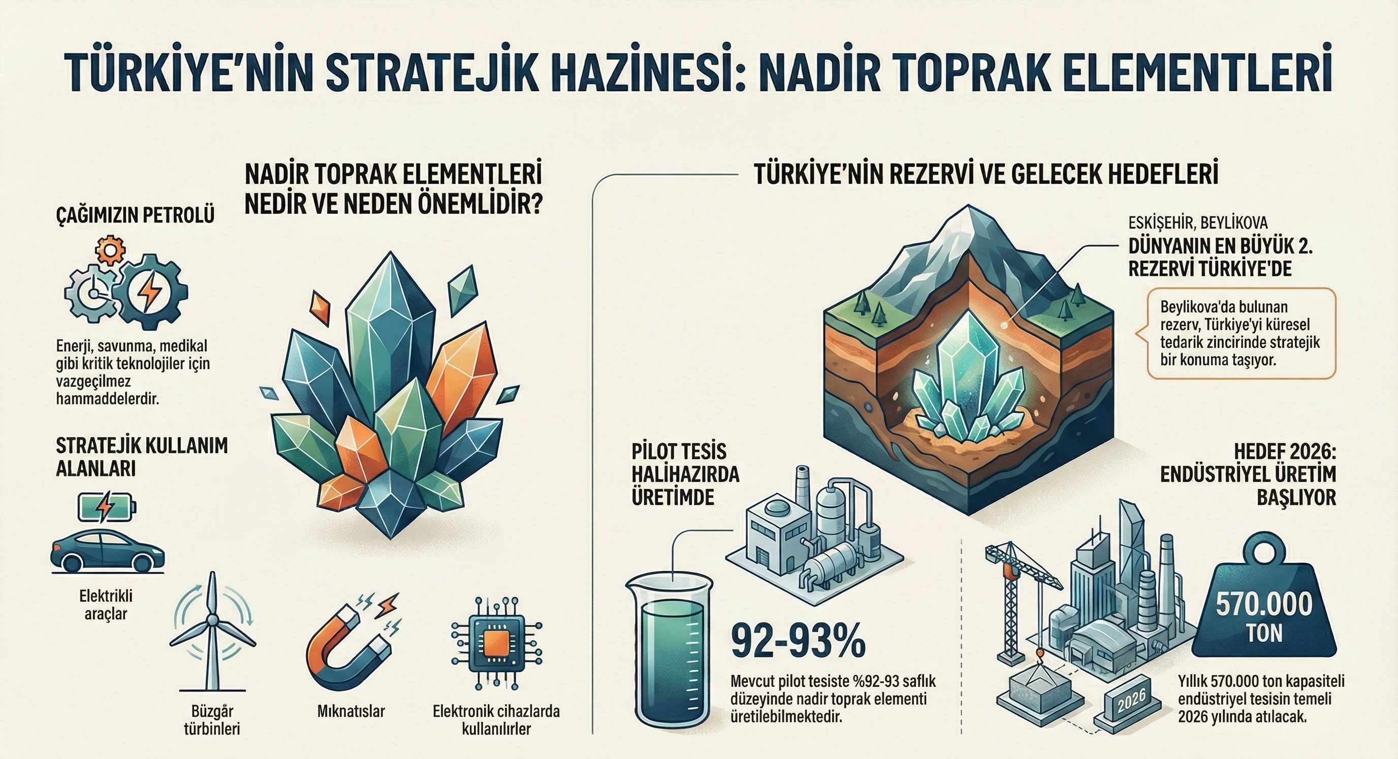 Türkiye, 2026’da atılacak endüstriyel tesis temeliyle birlikte yalnızca bir maden üreticisi olmayı değil, yüksek teknoloji ham maddesi sağlayan küresel bir tedarikçi olmayı hedefliyor. Bu adım, enerji arz güvenliğinden savunma sanayiine kadar birçok alanda stratejik bağımsızlığı güçlendirecek.