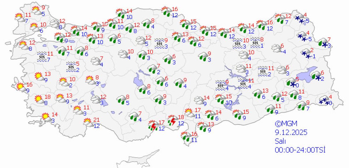Batı ve iç bölgelerde hava açılacak, ancak Karadeniz’in doğusu ile Doğu Anadolu’da hafif yağmurlar mümkün.